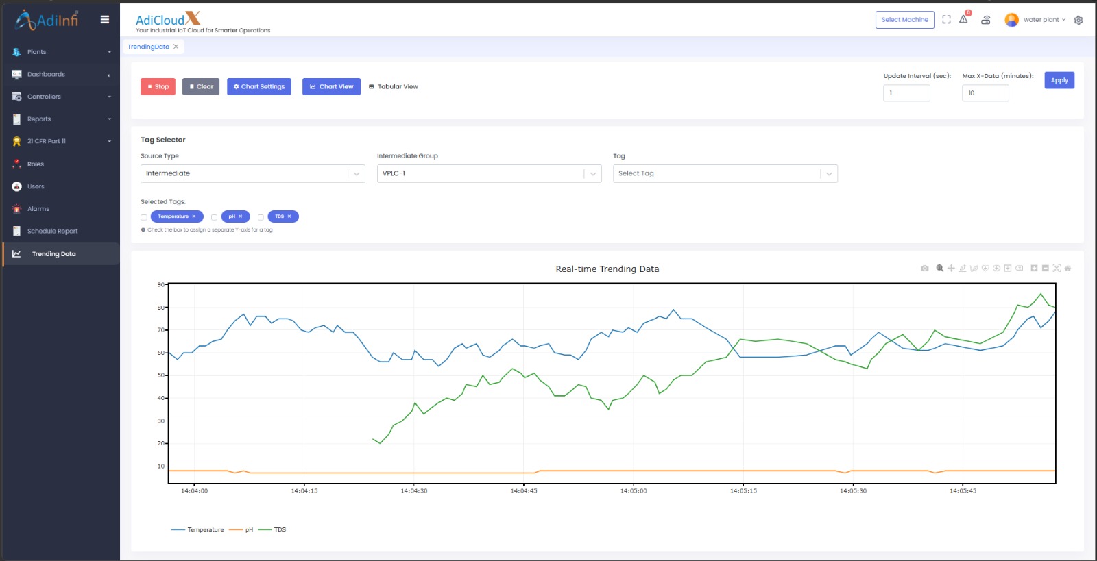 - Users can now configure charts with multiple data series within a single chart view to monitor different parameters over a selected time period.